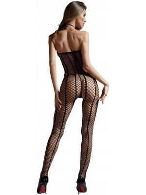 Siyah Açık Göğüs ve Ağ Detaylı File Vücut Çorabı | Cesur Lüks Bodystocking