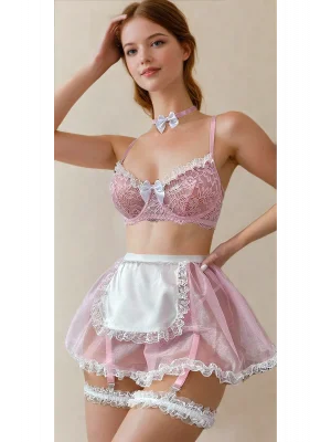 Pudra Pembe Dantel Detaylı Hizmetçi Kostümü | Rosé Luxury Roleplay Serisi