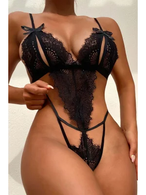 Noir Sculpture Kemer Detaylı Dantelli Jartiyerli Bodysuit