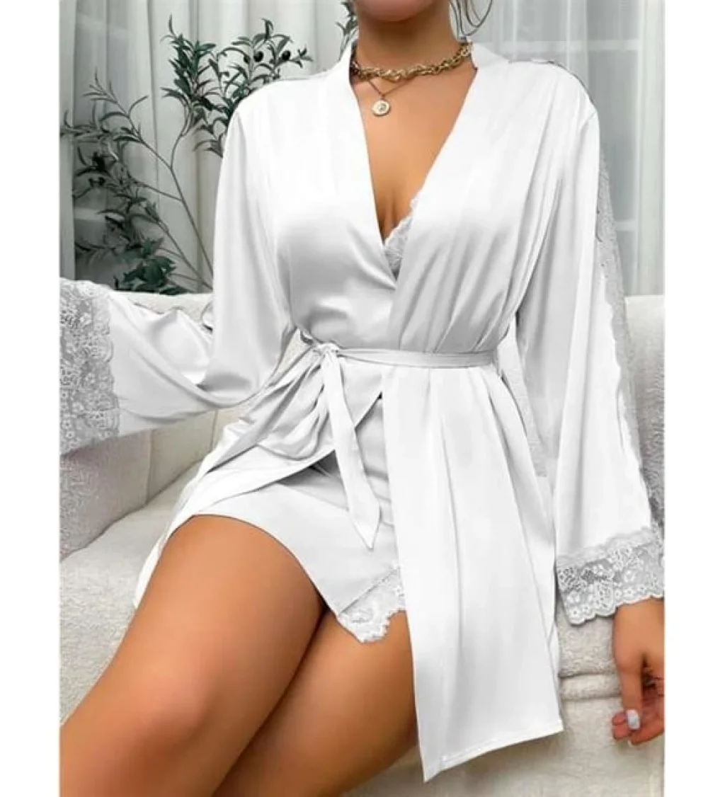 Kullanım Avantajları Zahmetsiz ihtişamı ve bütünsel şıklığı bir arada sunan 2'li kombin avantajı. Sabahın ilk kahvesinden romantik bir akşamın başlangıcına kadar her anınıza eşlik eden bu set, pratikliği lüksle birleştirir. Gecelik ve sabahlığın ikonik uyumu, ek bir hazırlığa gerek kalmadan saniyeler içinde büyüleyici ve bakımlı bir görünüme kavuşmanızı sağlar.