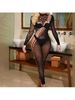 Kadın Sexie Transparan File Desenli Vücut Filesi