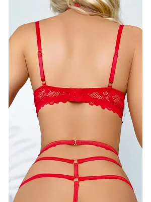 Kırmızı Secret Lace Açık Kasık Dantelli Jartiyer & String Takım